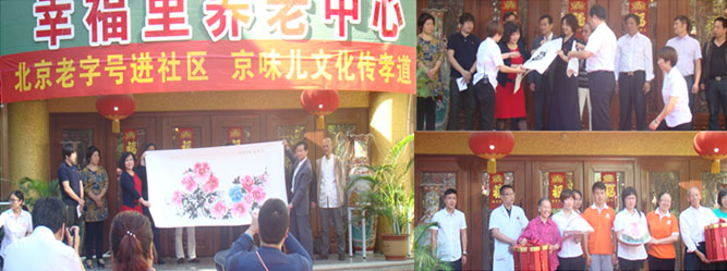 金秋十月,迎来了我国第六个敬老月。为深入贯彻落实习近平总书记关于注重家庭家教家风建设的讲话精神,推动丰台区2015年“培育敬老家风、建设和睦家庭”敬老月活动,9月25日上午,在幸福里养老中心隆重举行了“北京老字号进社区,京味儿文化传孝道”暨寻找空巢老人敬老月启动仪式。
